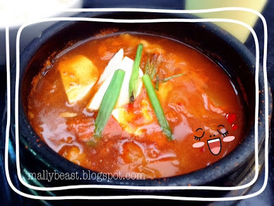 | It was raining so I felt like some soup. This is a bowl from the Korean stall, Kimchi Tofu Pork. So yummy, I freaking love kimchi I can eat it everyday. |